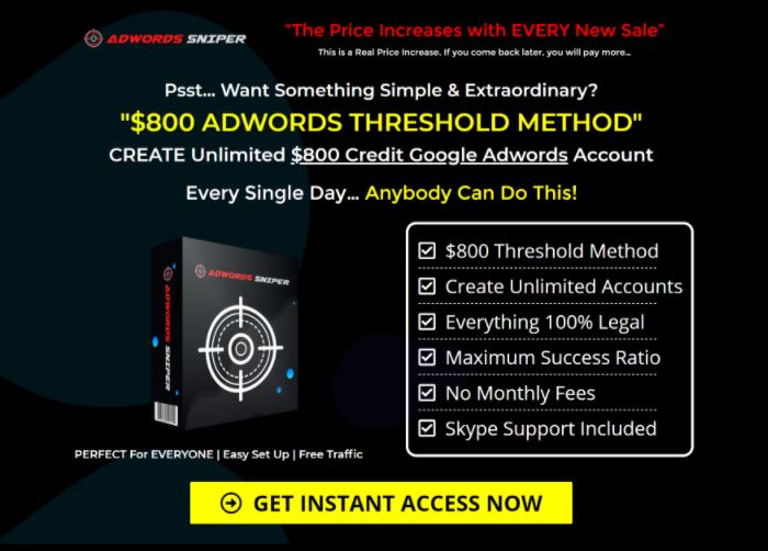 Get Now Unlimited $800 Threshold Adwords Account Creation Method